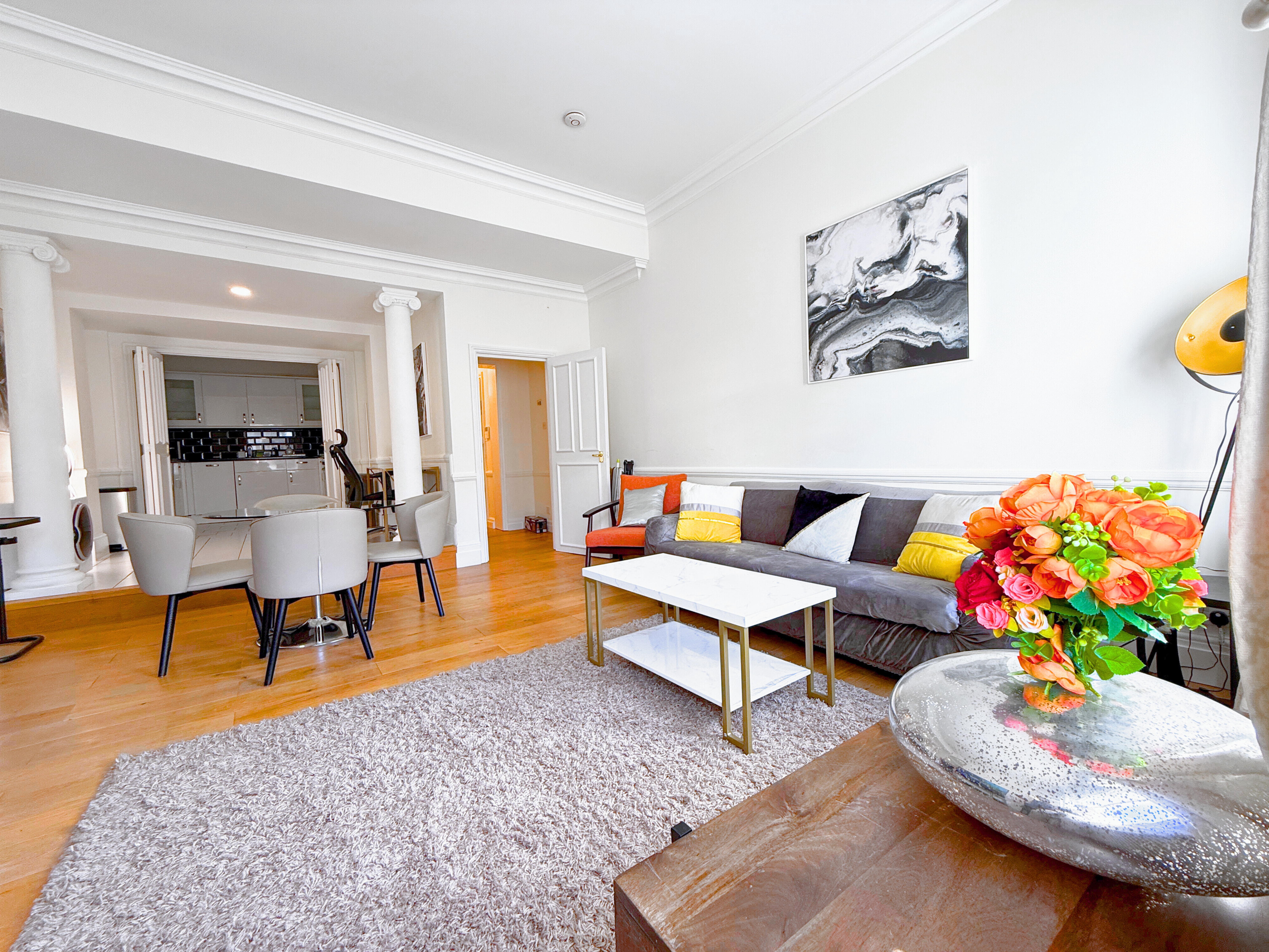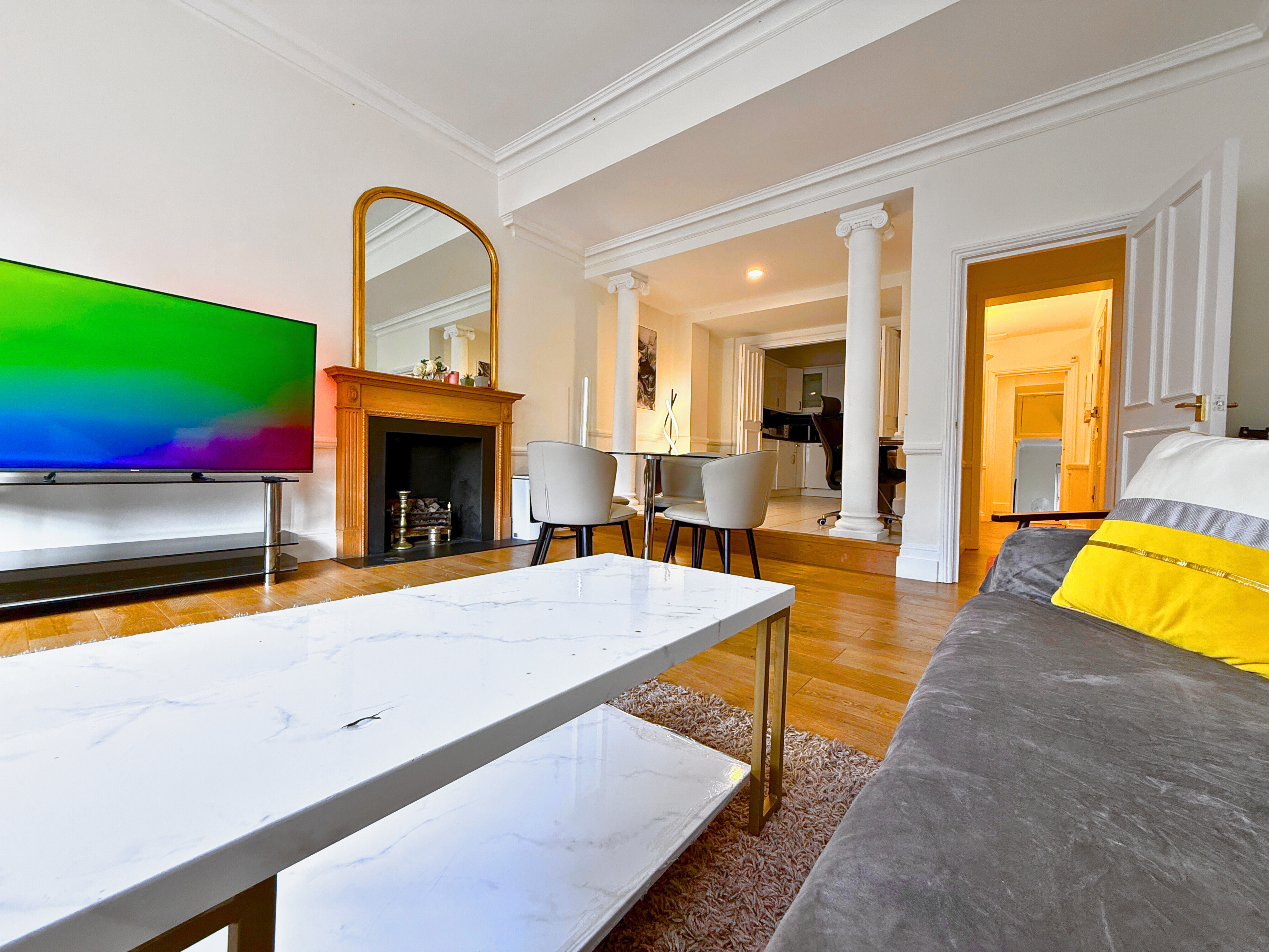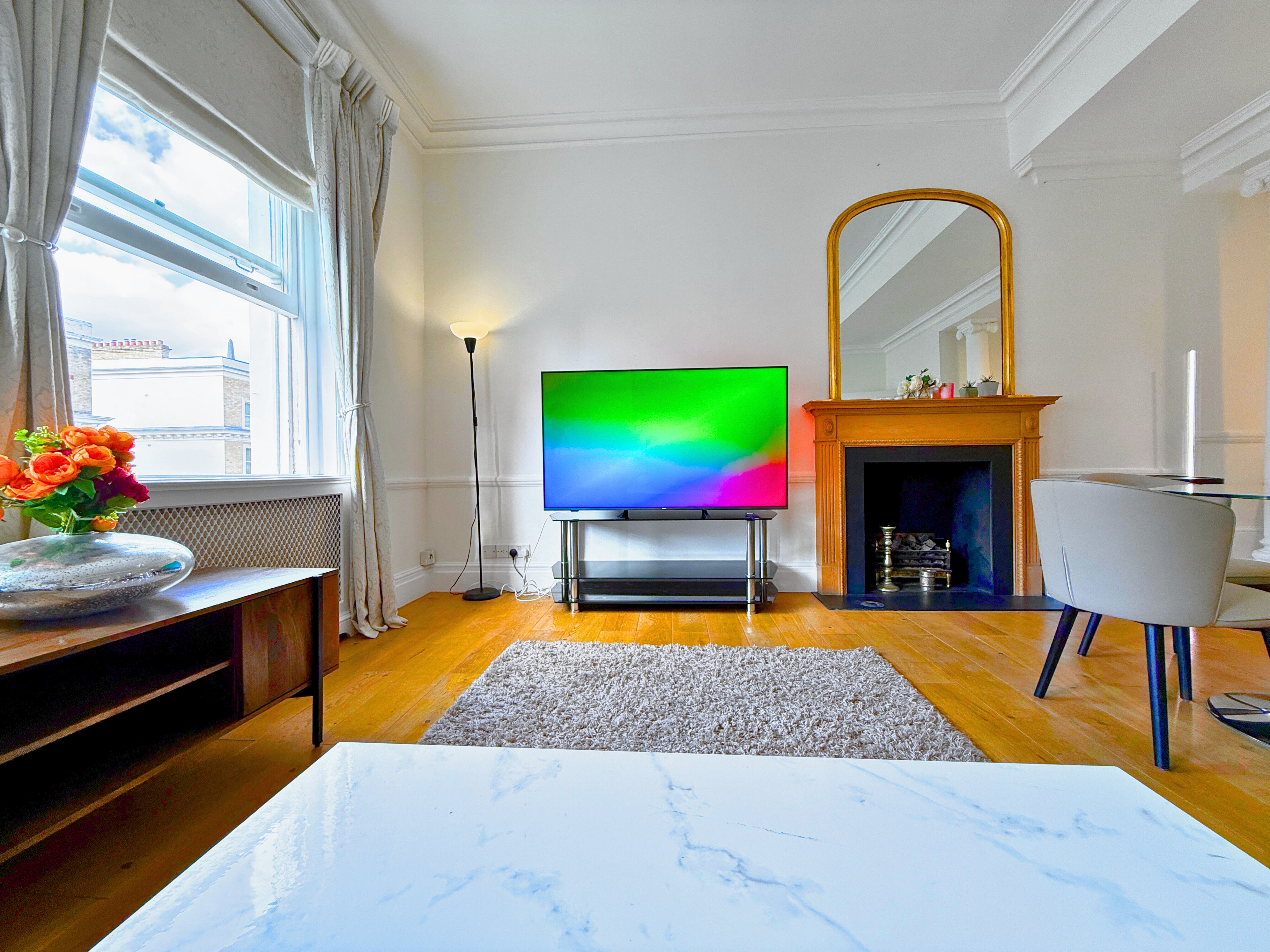 - Spacious 2 Bed 2 Bath near Knightsbridge + Hyde Park - private garden that nobody can look over - glorious period features and pillars - situated in one of London's most prestigious garden squares 1 minute from Hyde Park - Minutes from Royal Albert Hall - Minutes from Harrods - 65" Netflix Smart HDTV - Flexible check-in and check-out time upon request